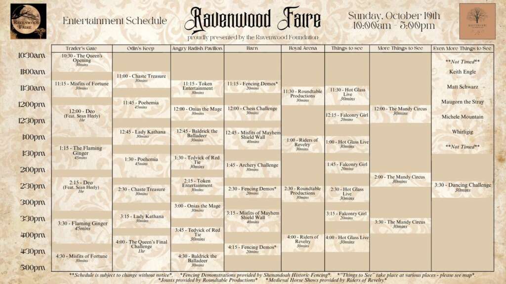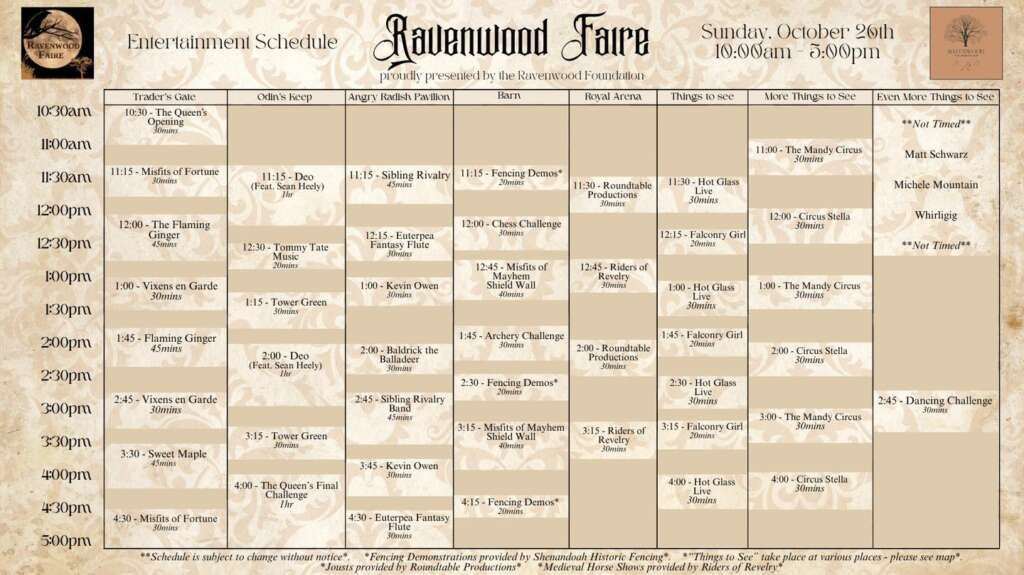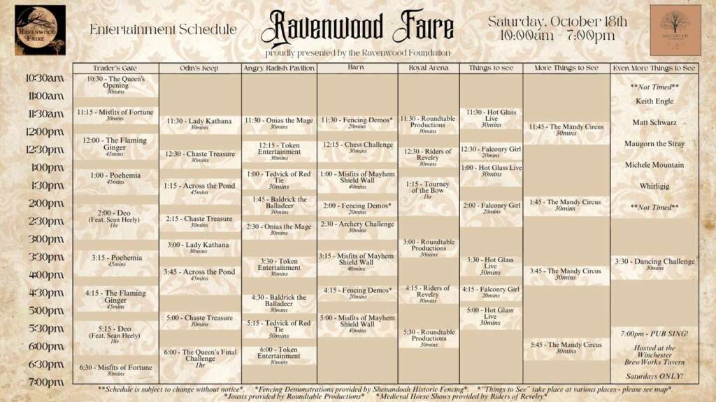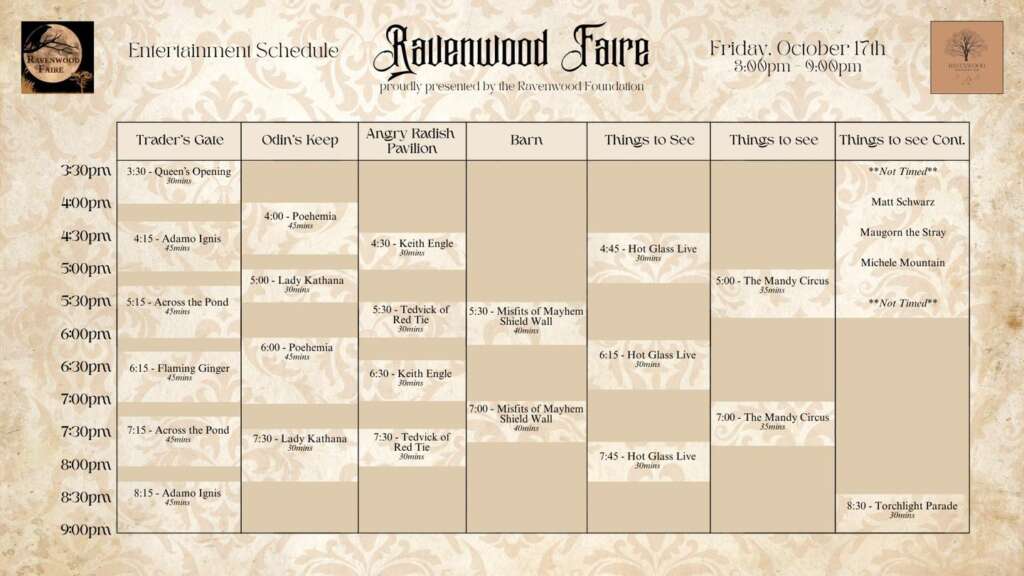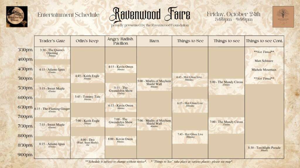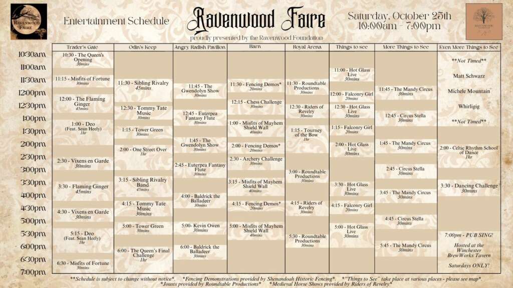 Ravenwood Schedule 2025 ~ IS LIVE!!!!
